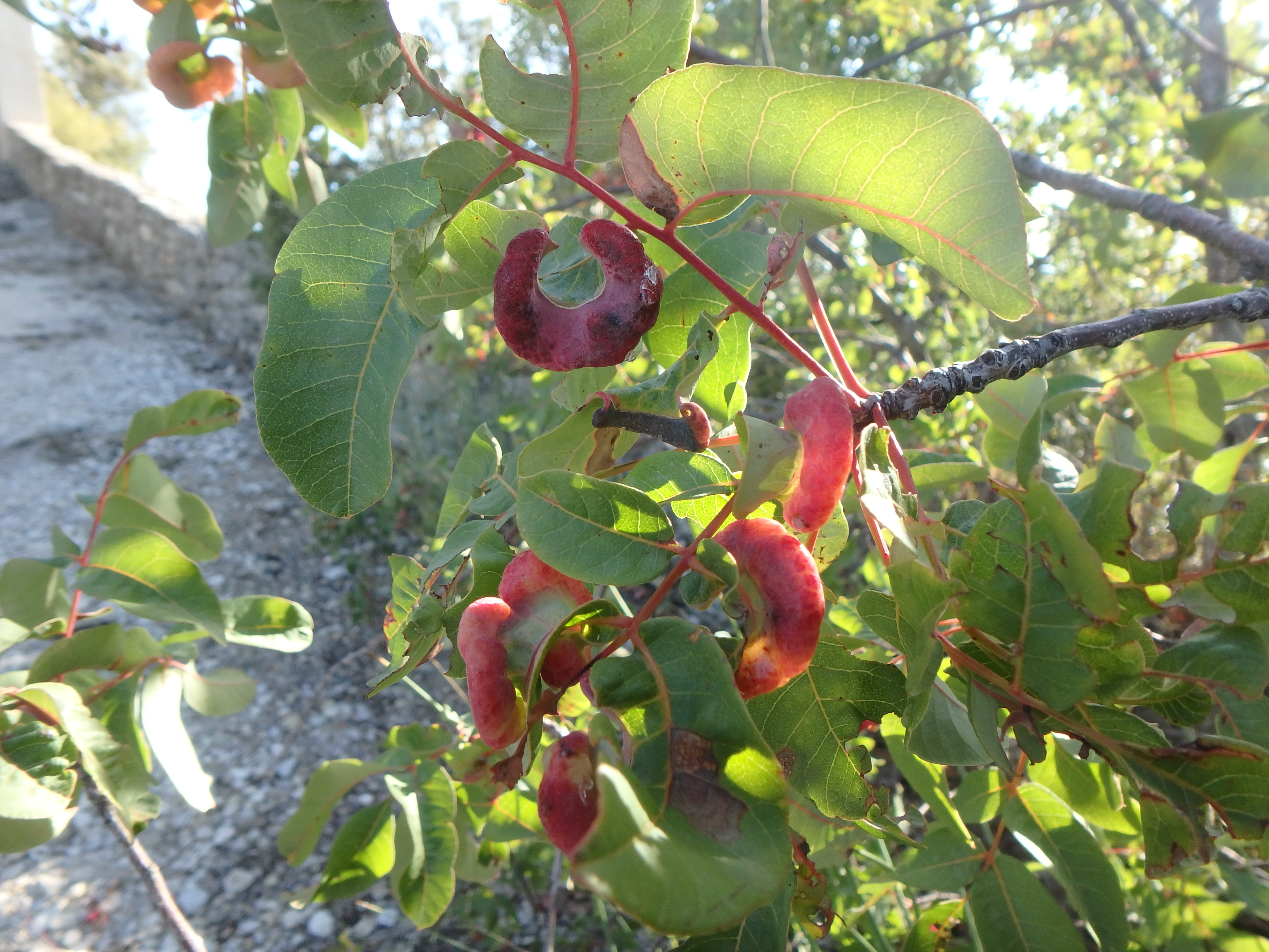 22-09-17-Rando-sophro-plantes à Lurs vendredi 22 septembre 2017 mille1feuilles Photos des sorties 0 Séance sophro dans le village Galle du pistachier Lurs, Chemin des évèques Pistacius terebinthus (fruits et galles) Les fruits du rouvet (Osyris alba) La vue vers Forcalquier Chemin des Evêques