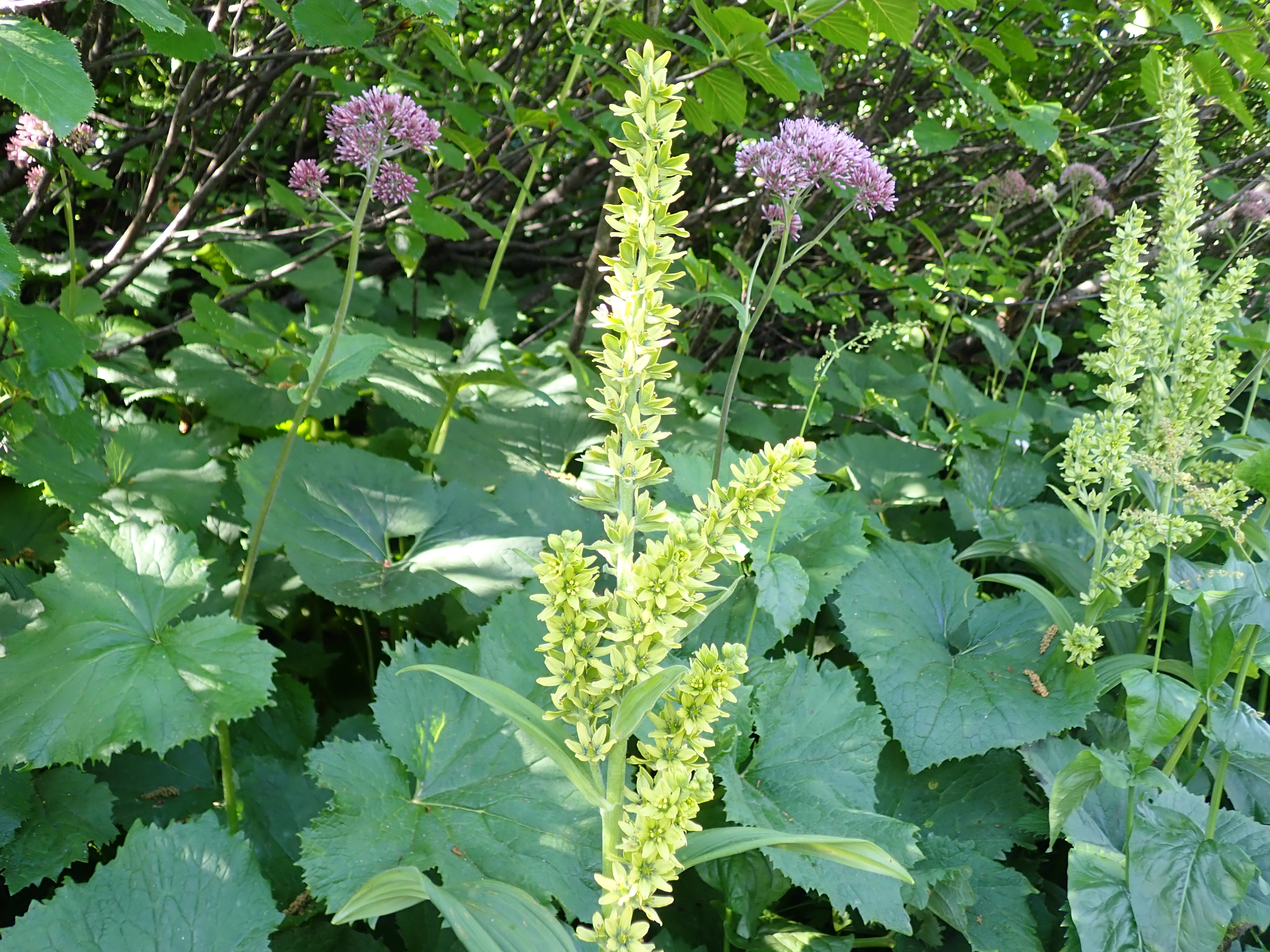 Une mégaphorbaie est une formation de l’étage alpin constitué de plantes hautes et à grandes feuilles. Elles poussent dans des zones fraîches et humides exposées au nord. Les mégaphorbaies sont souvent associées à des aulnaies à aulne vert, arbuste qui vit en symbiose avec des bactéries fixatrices d’azote atmosphérique. Ces bactéries enrichissent le sol en azote ce qui explique la grande taille des plantes comme Adenostyle alliarae et Veratrum lobelianum.