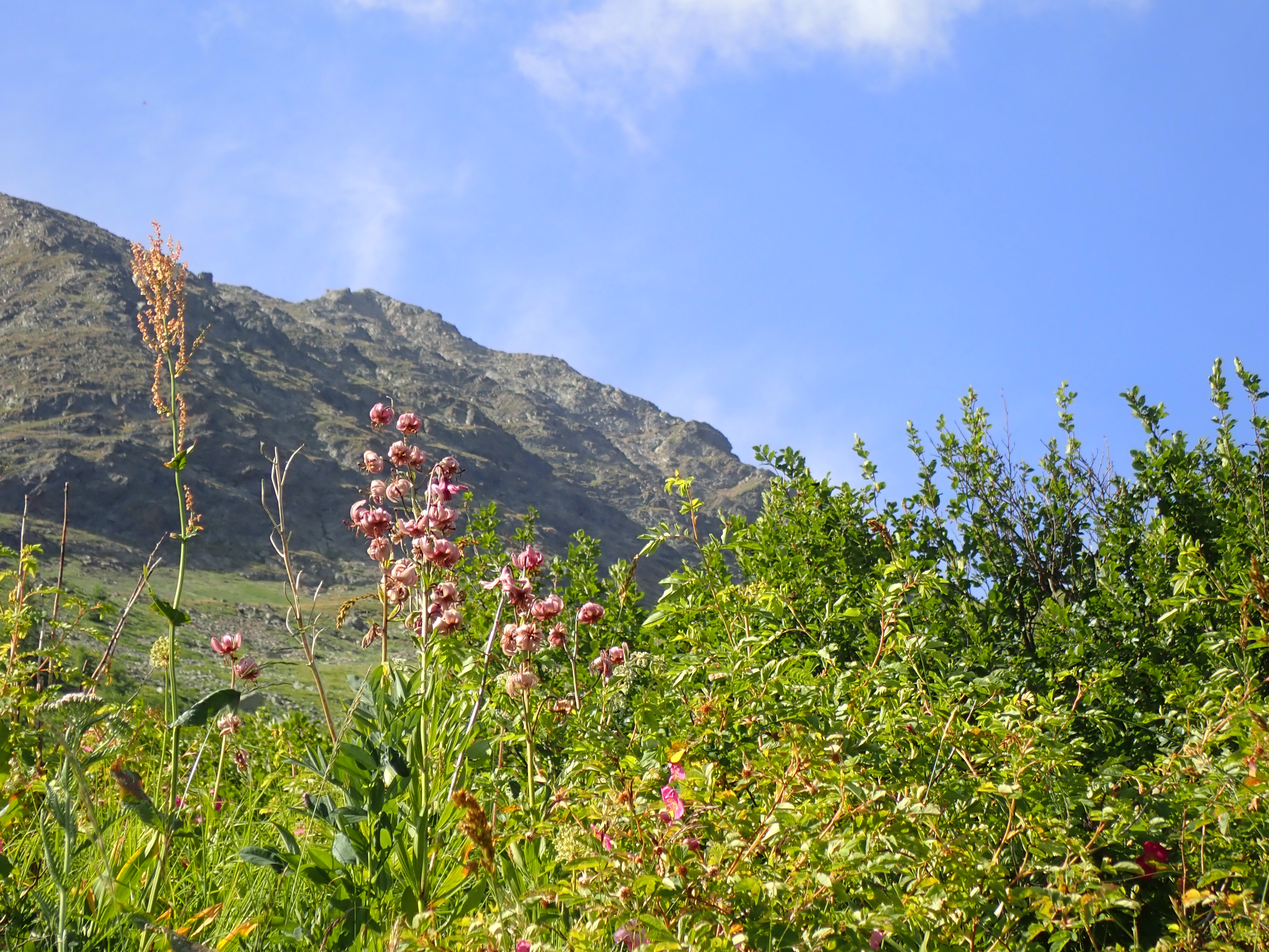 A l’ubac du Lautaret (Combeynot), on observe un vaste marais sur lequel nous avons pu observer Eriophorum vaginatum, la linaigrette engainante, puis une végétation des éboulis et rochers acidophiles.