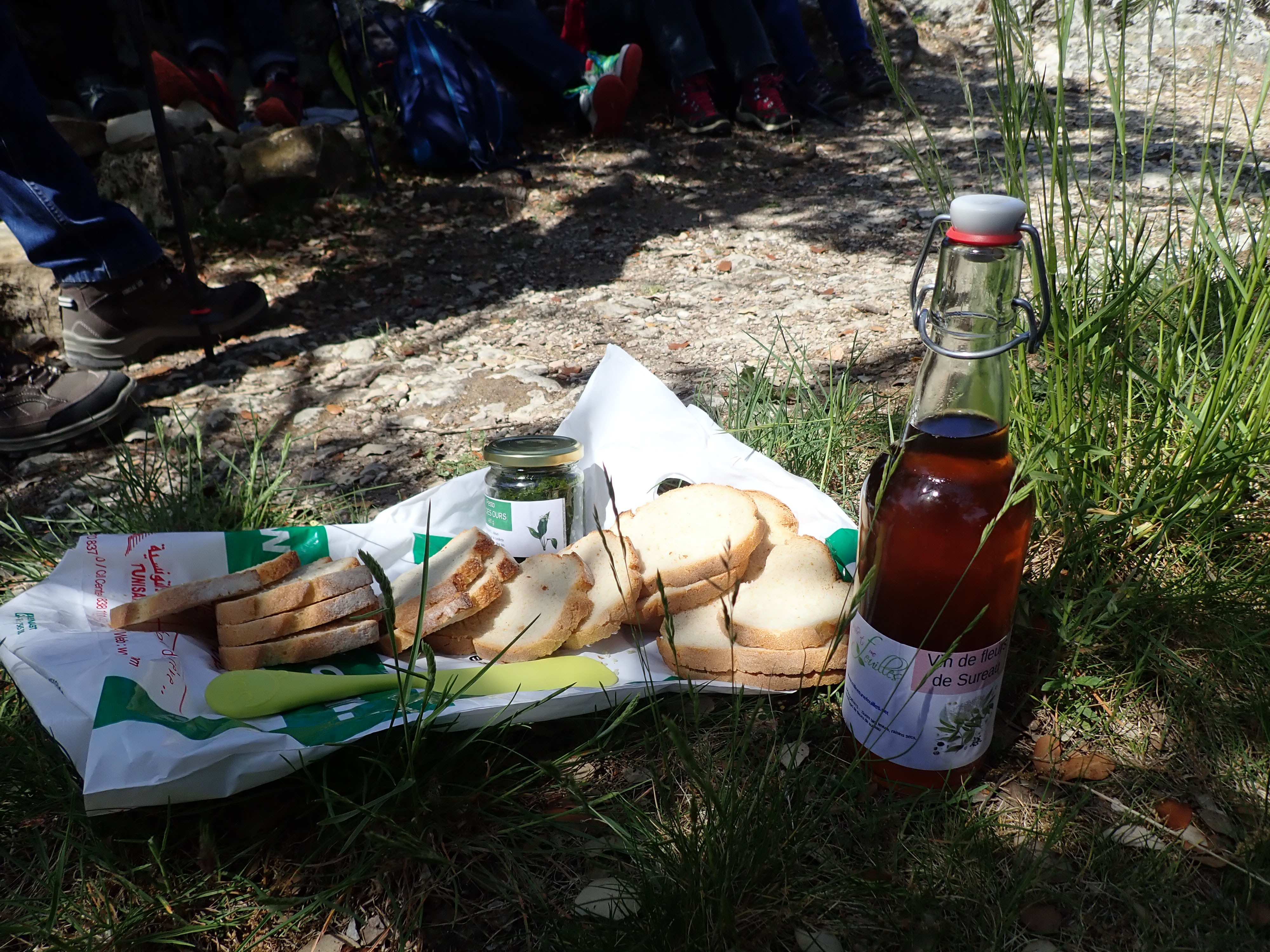 Petit apéritif au sommet de la Roche Amère (ail des ours et vin de fleurs de sureau)