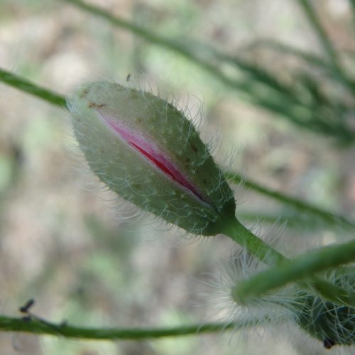 Aspect : plante annuelle à tige et feuilles poilues, à fleurs aux 4 pétales rouges et onglet noir ; le fruit est une capsule globuleuse contenant de nombreuses graines ; de la tige incisée s’écoule un latex blanc.