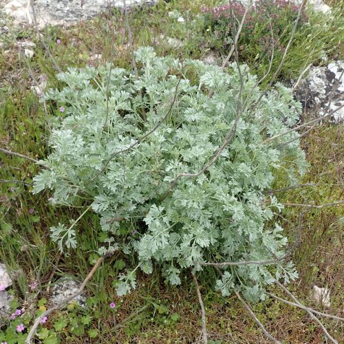 Artemisia absinthium Absinthe Asteracées Médicinale (Vermifuge, stomacale) très amère. Toxique à forte dose (Thuyone)