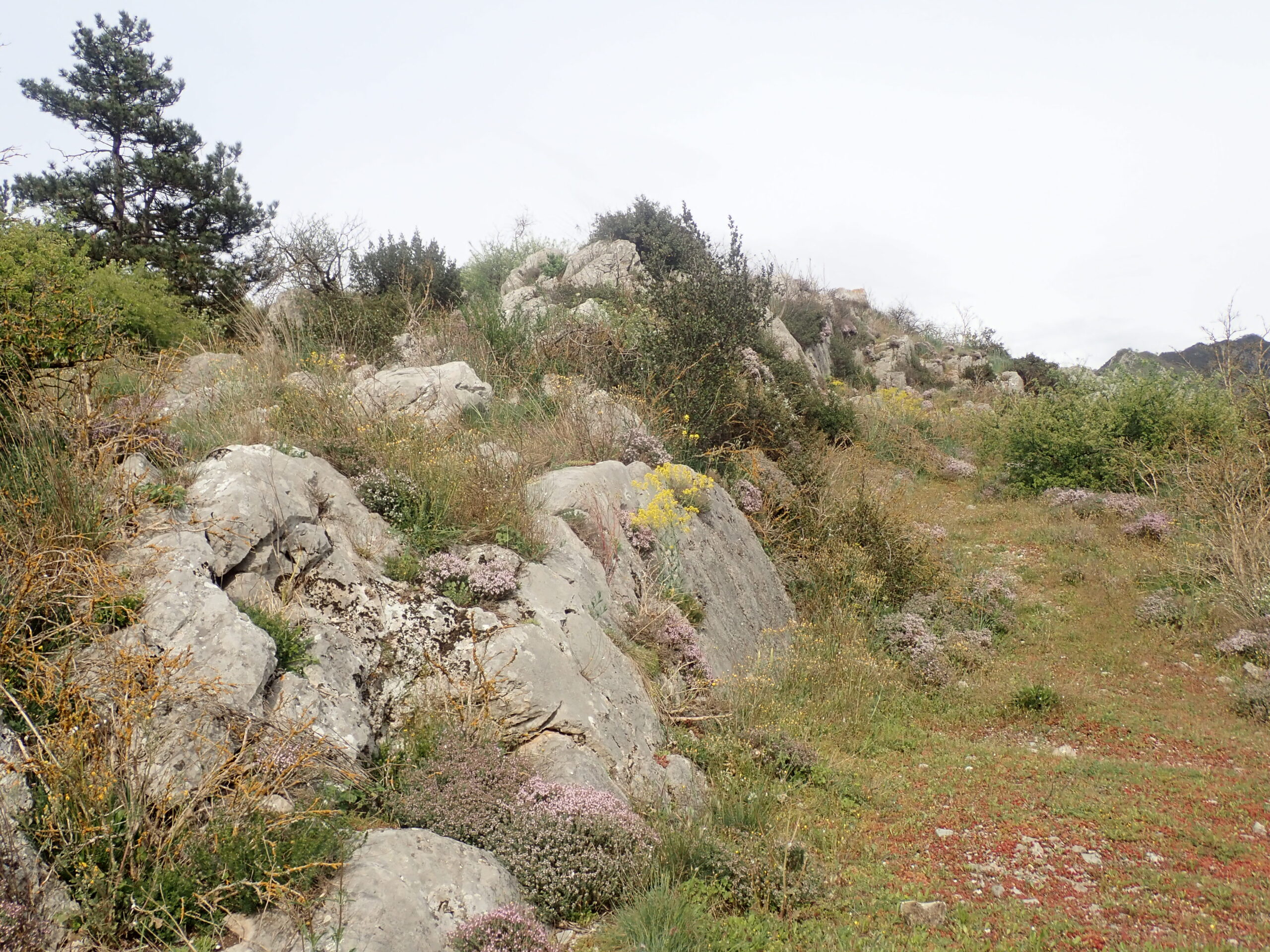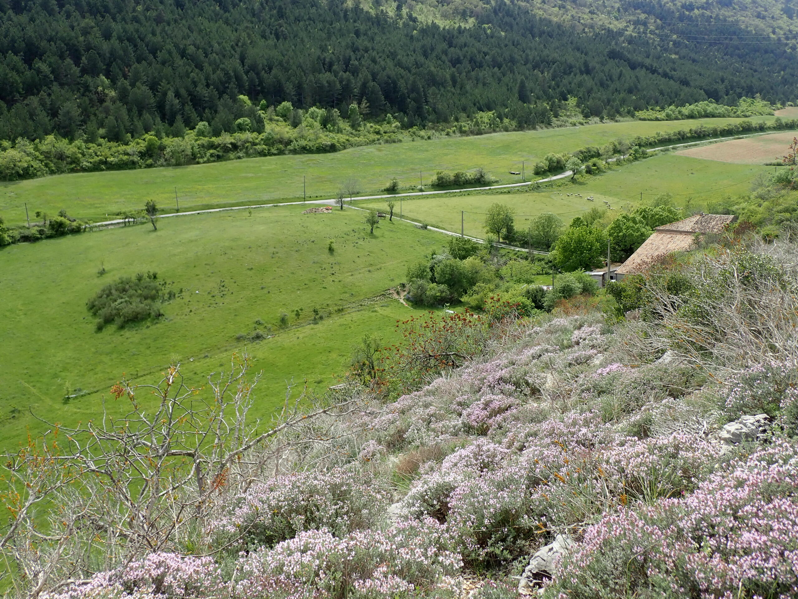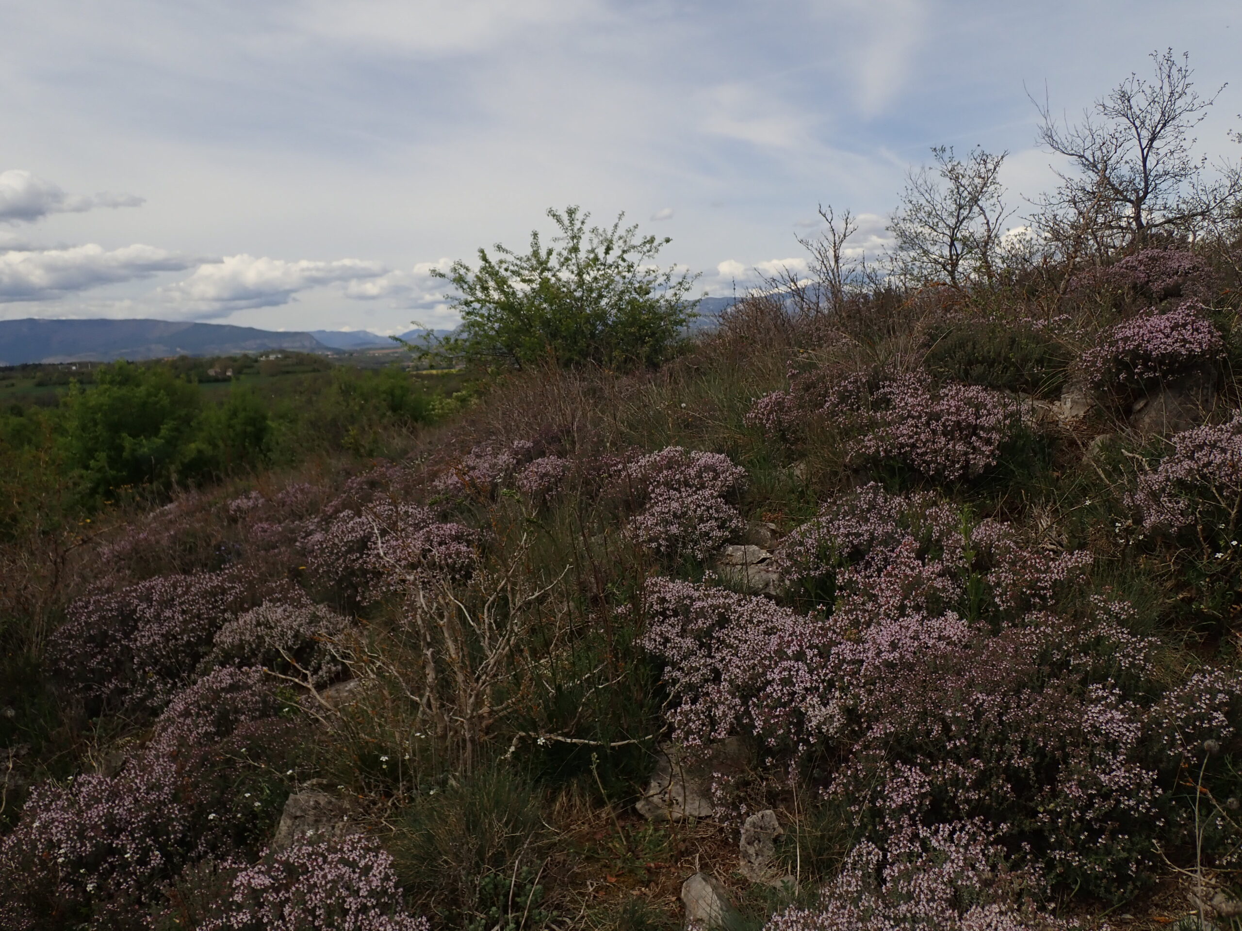 Une belle flore supramediterranéenne avec affinité montagnarde à l’ubac. Nous avons pu observer une flore riche avec quelques plantes peu communes, et encore quelques salades sauvages. Le thym pousse à profusion et embaume toute la colline. En dessous des photos, vous aurez une liste (non-exhaustive) des plantes vues.