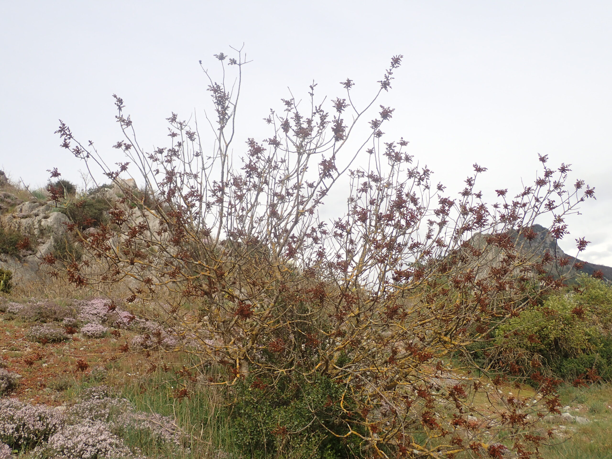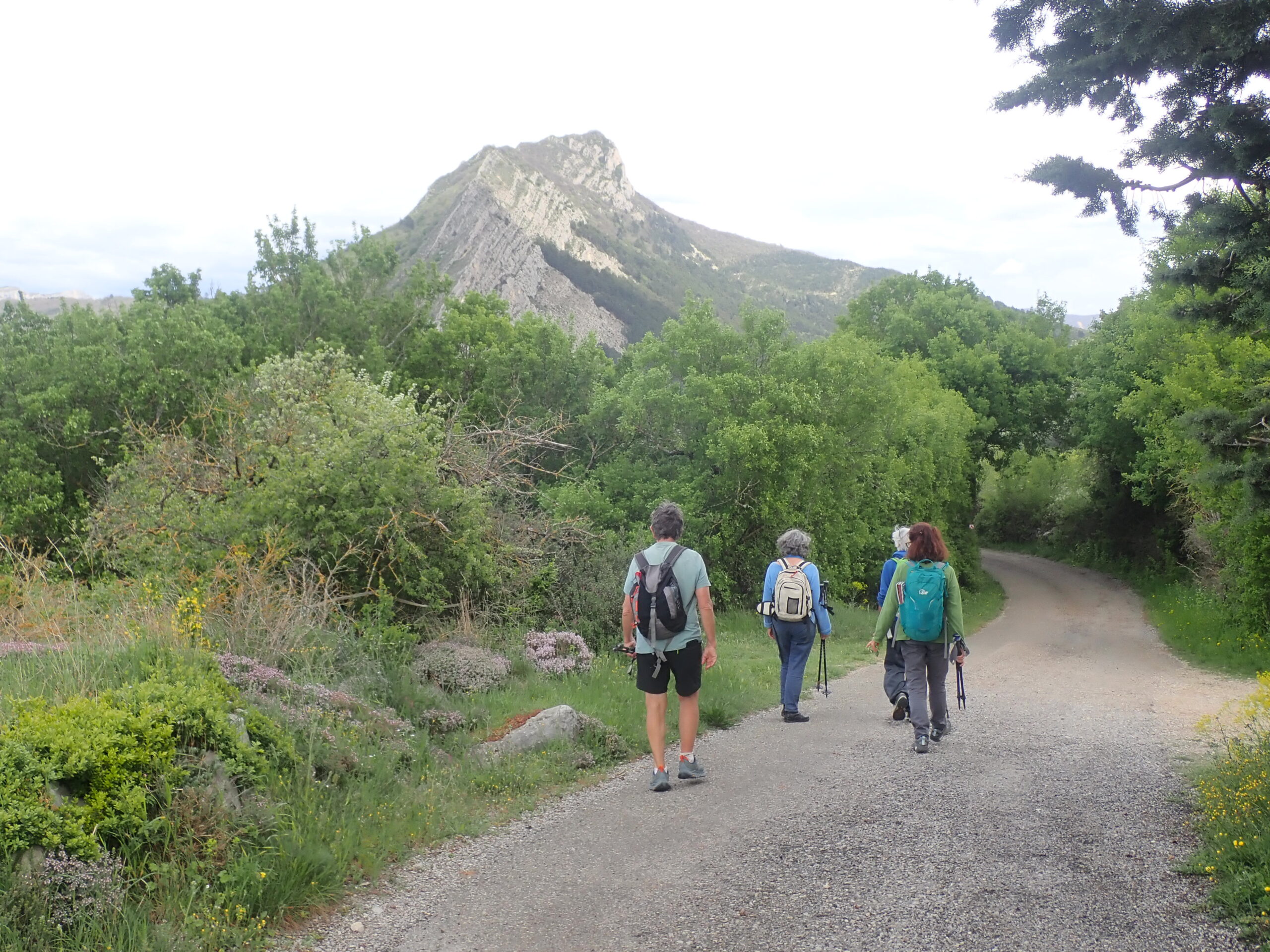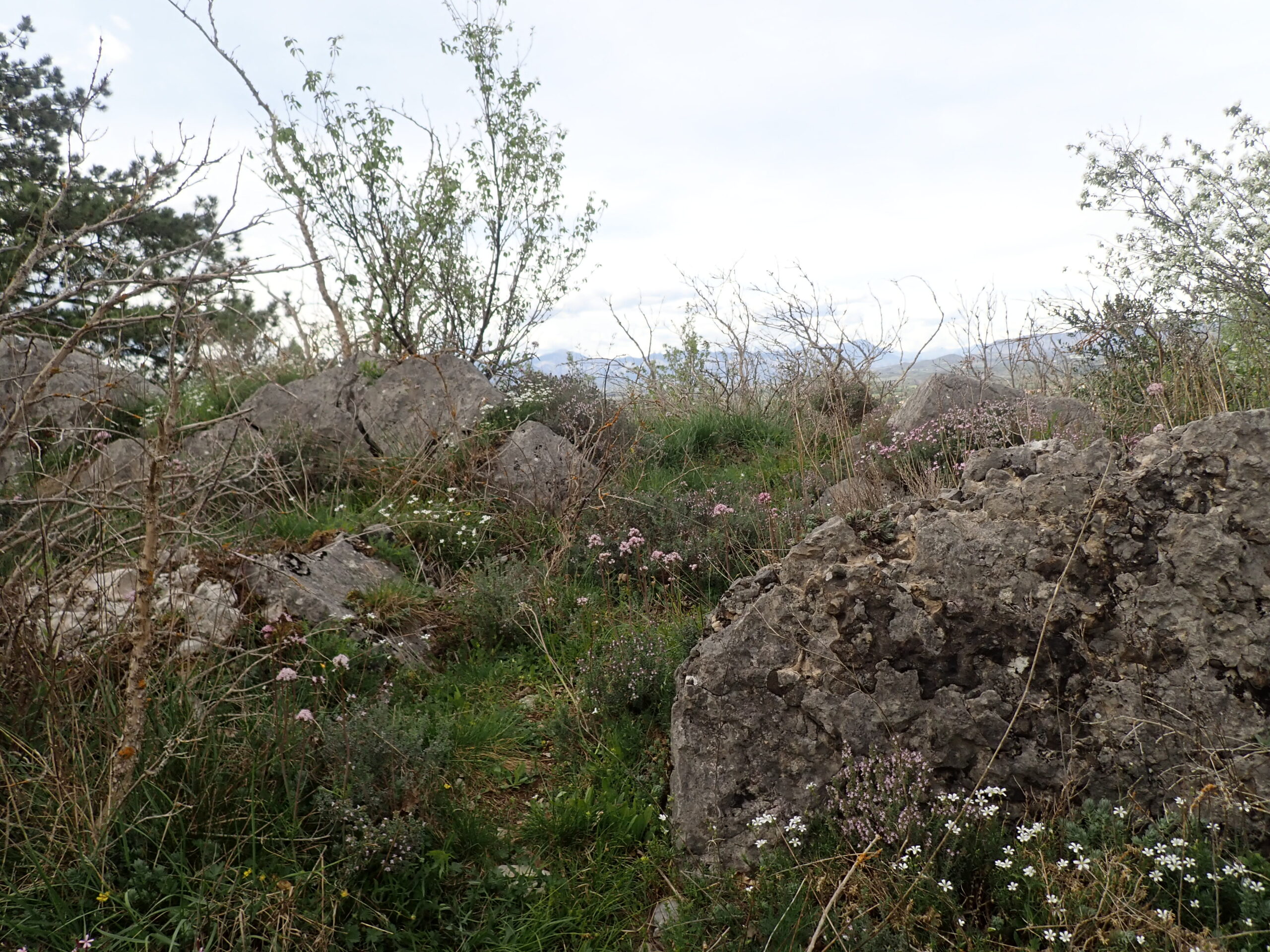 Une belle flore supramediterranéenne avec affinité montagnarde à l’ubac. Nous avons pu observer une flore riche avec quelques plantes peu communes, et encore quelques salades sauvages. Le thym pousse à profusion et embaume toute la colline. En dessous des photos, vous aurez une liste (non-exhaustive) des plantes vues.