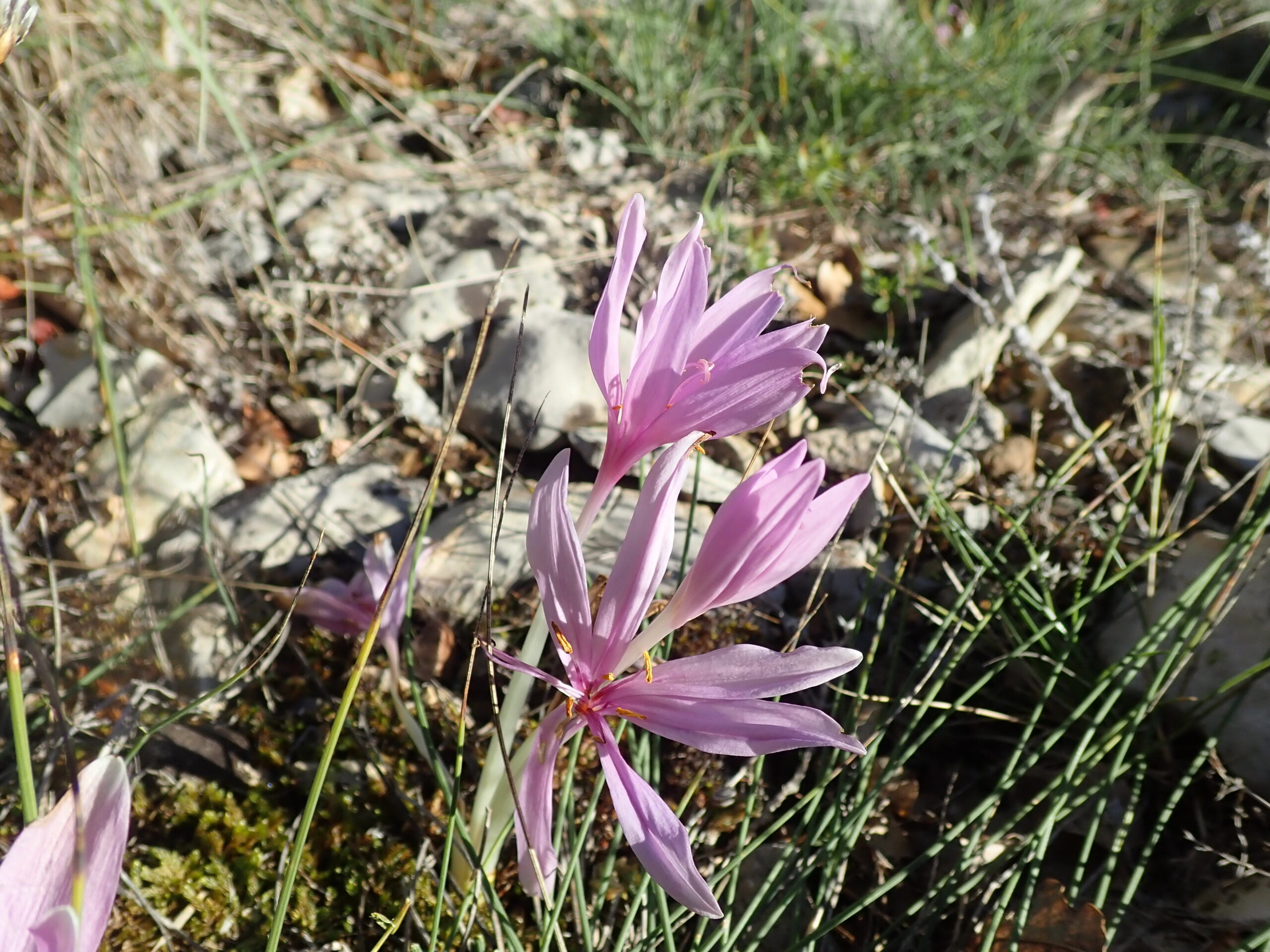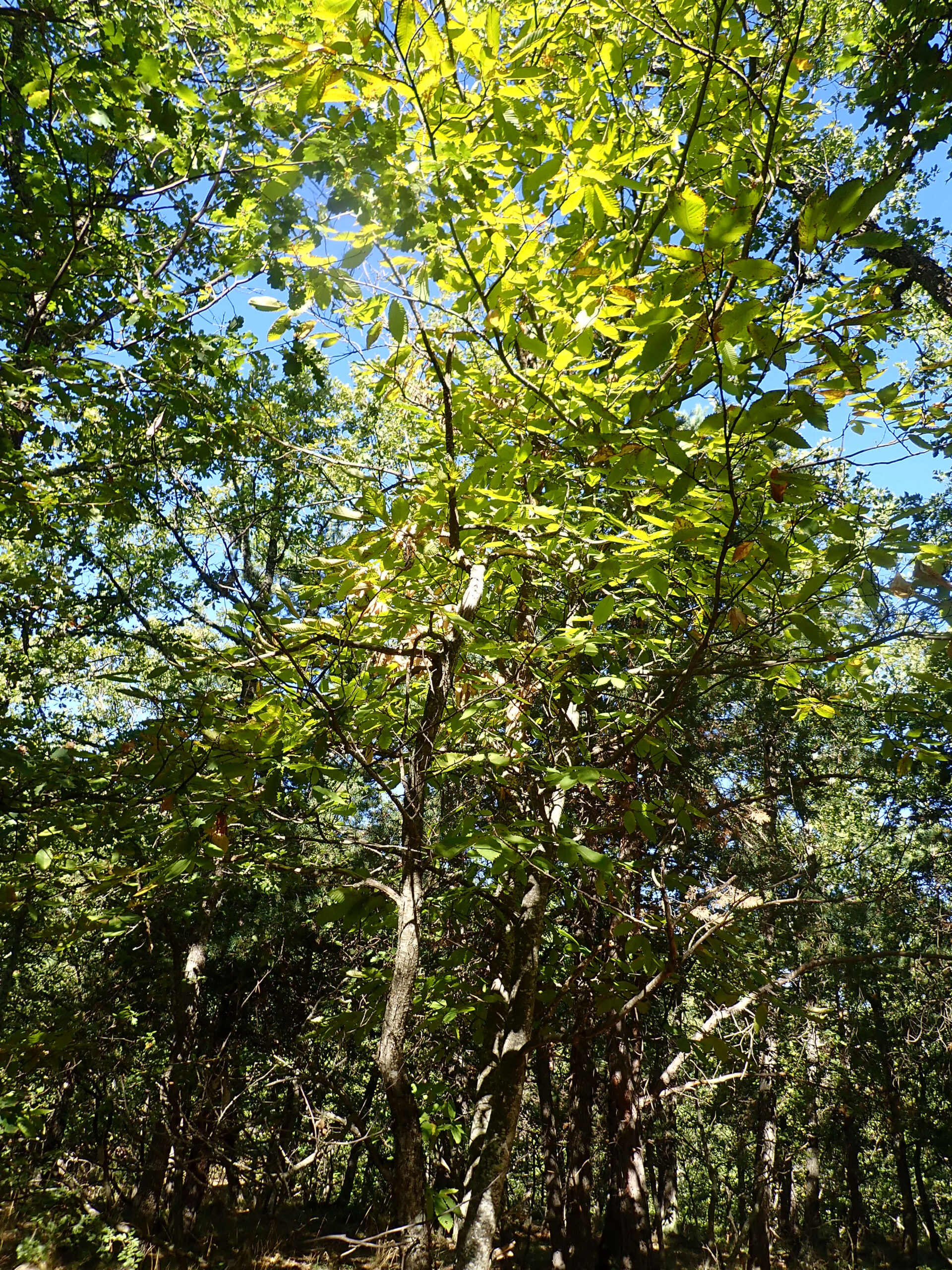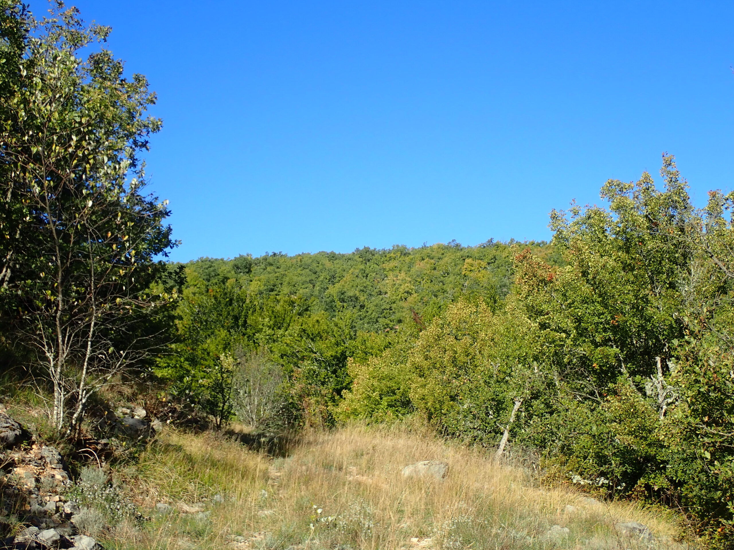 Nous avons alterné les milieux calcaires et acidophiles dans un milieu très sauvage, tellement sauvage que nous nous sommes un peu perdus au détour d’un chemin (pour mieux nous retrouver…. ) Nous avons traversé une belle chênaie pubescente-hêtraie. Nous sommes non loin de la Montagne de Lure que nous voyons parfois au détour d’un chemin. Ensuite nous entrons dans une belle hêtraie très sombre, pour finir sur les milieux acidophiles avec son cortège de plantes : Bruyères à balai, callunes, fougères, châtaignier, pins maritimes et même un chêne sessile (rare dans notre secteur). C’est la fin de l’été, nous avons vu nos premières colchiques et quelques rares champignons.