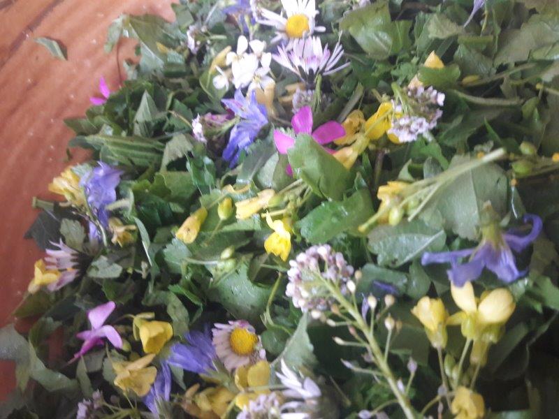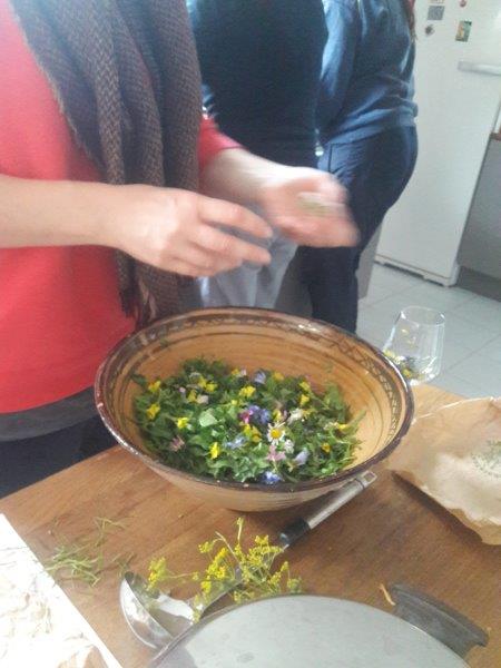 Retour à midi à la cuisine ou nous préparons ensemble un repas gastronomique à base de plantes sauvages.